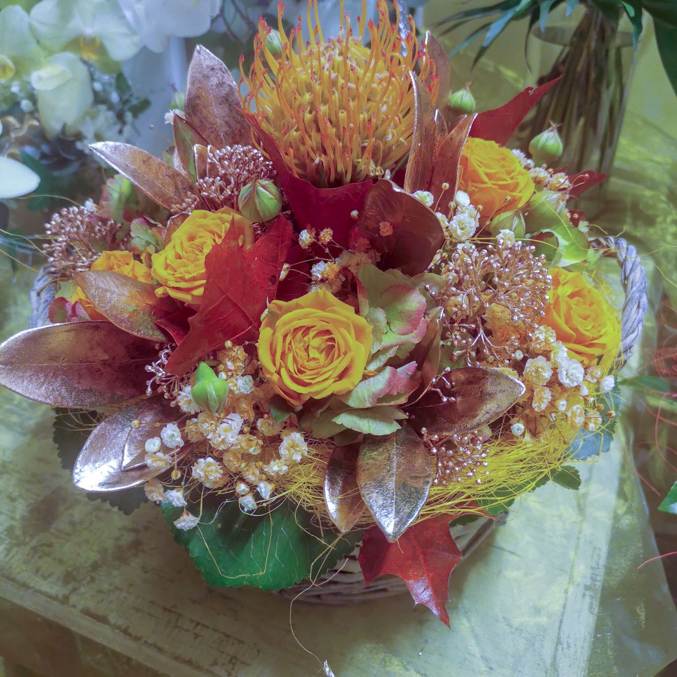 Sprechen Sie Ihre Wünsche und Vorstellungen aus. Wir beraten Sie gerne über Tisch-, Saal- und Kirchenschmuck, Autodekorationen sowie über Hochzeits- und Trauerfloristik und helfen Ihnen, individuelle Kreationen nach Ihren Bedürfnissen zu schaffen.